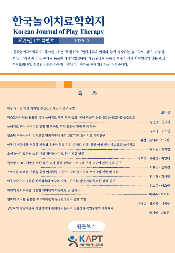 한국놀이치료학회지 제29권 1호는 ‘특별호’로